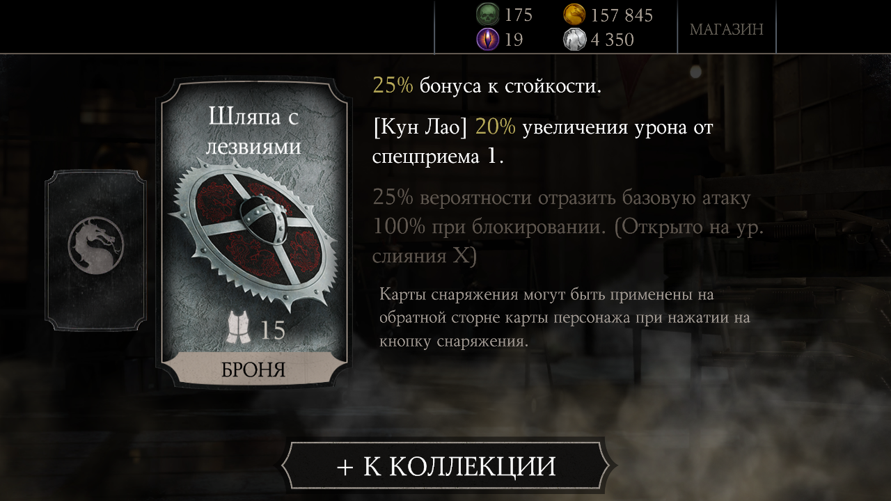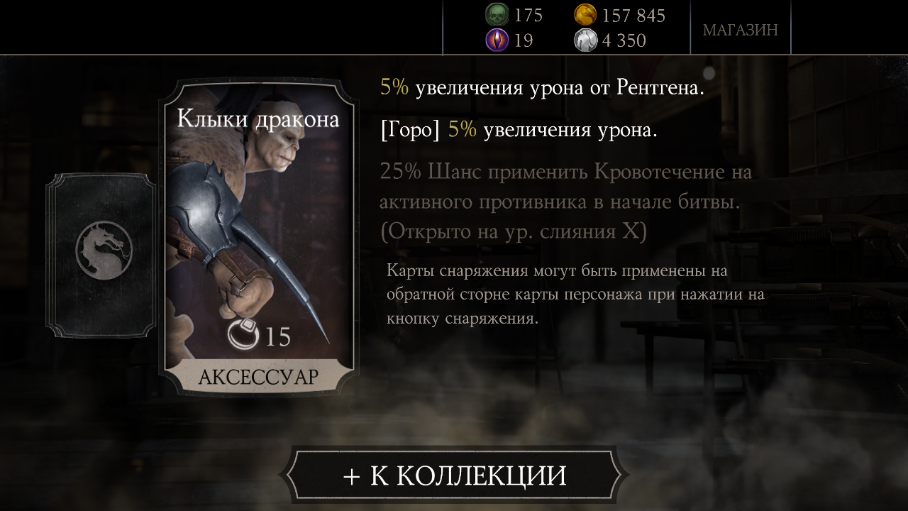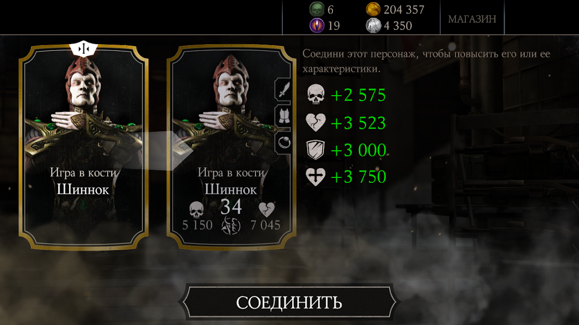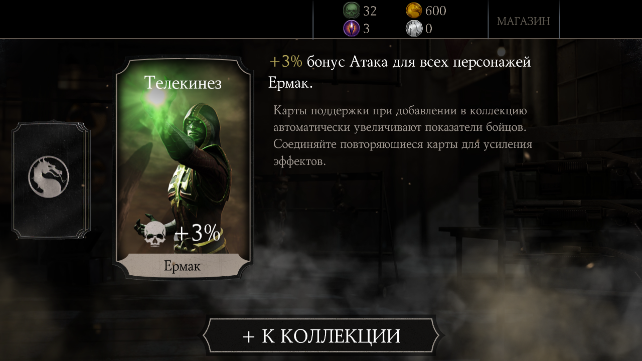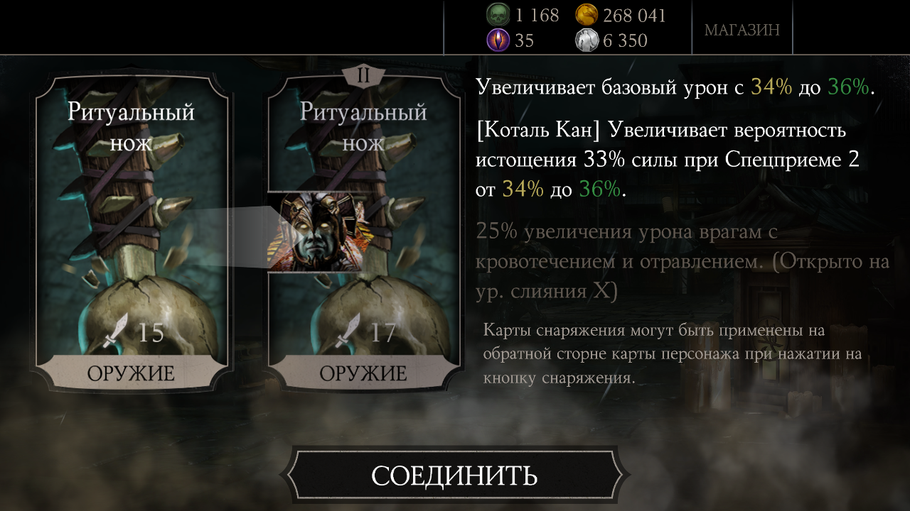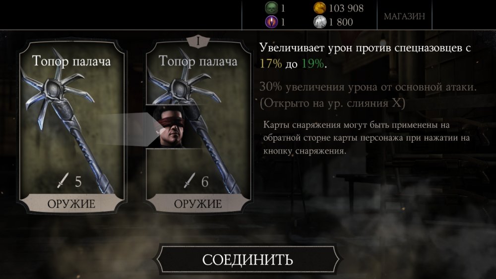 Купил еще один набор Элитный и опять повтор: Игра в кости Шиннок, получил слияние карты. Первая карта с Шинном: Mortal Kombat X Mobile: Открытие набора (Сообщение отдельно: #1948). Подозреваю, что в следующем Элитном паке будет Кракен Рептилия или Шиннок... А хочется алмазного перса, Милену, Рейдена или Скорпиона!
