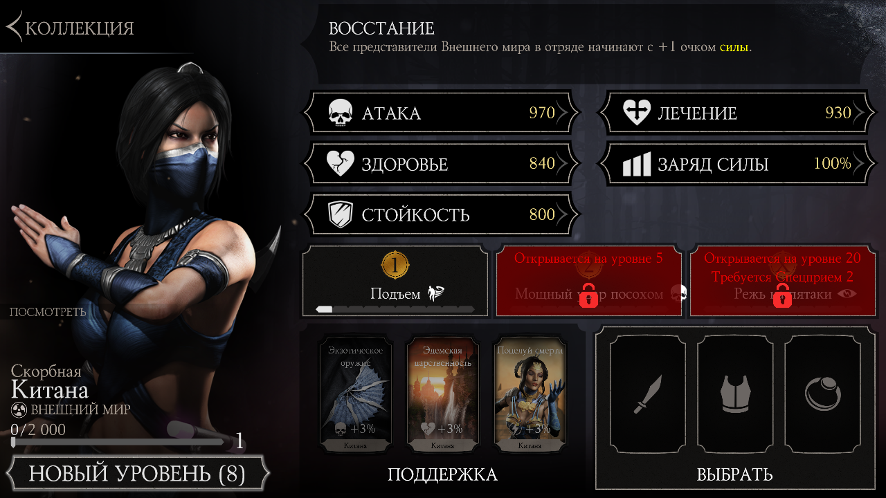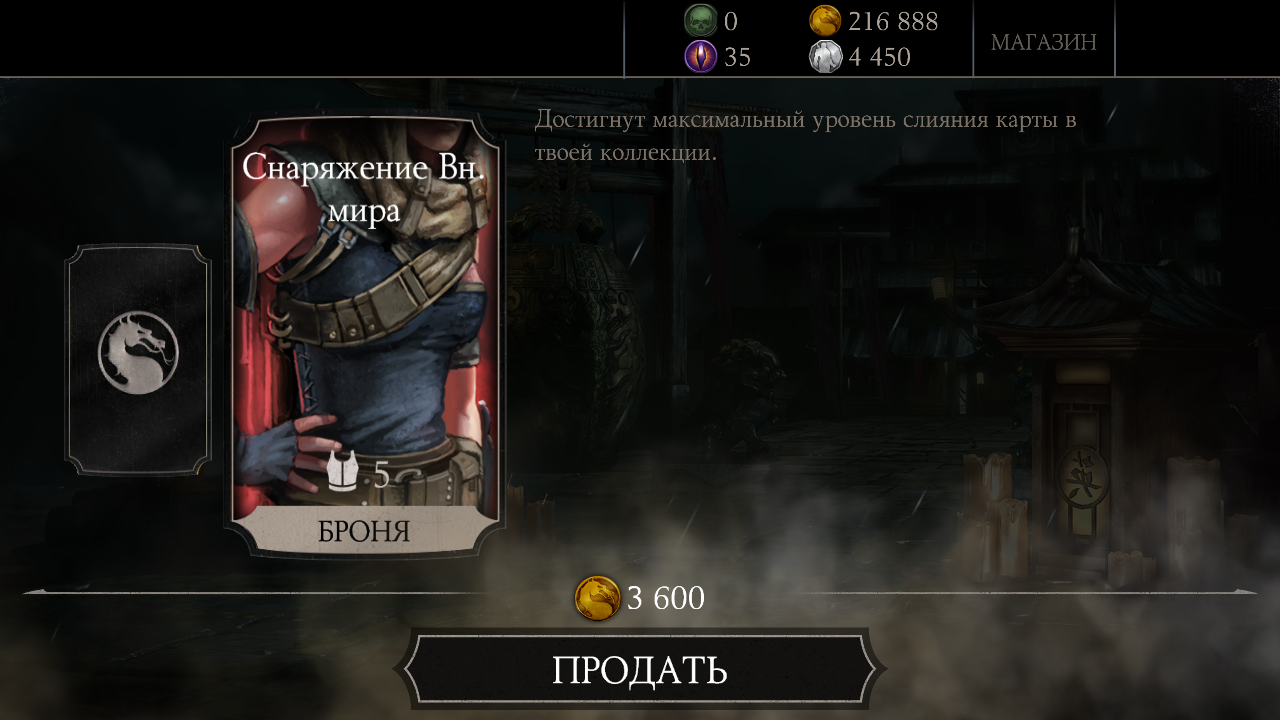 В магазине Скорбная Китана стоит 300 душ, благодаря Боевому набору и предоставленной скидке, я купил красотку за 112 душ, плюс две карточки! Мелочь, а приятно!