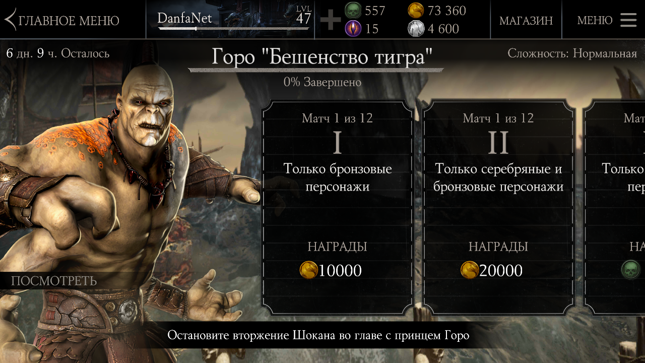 Началось испытание Горо: Бешенство тигра! Длительность испытания - чуть больше шести суток. Для прохождения испытания требуется:
