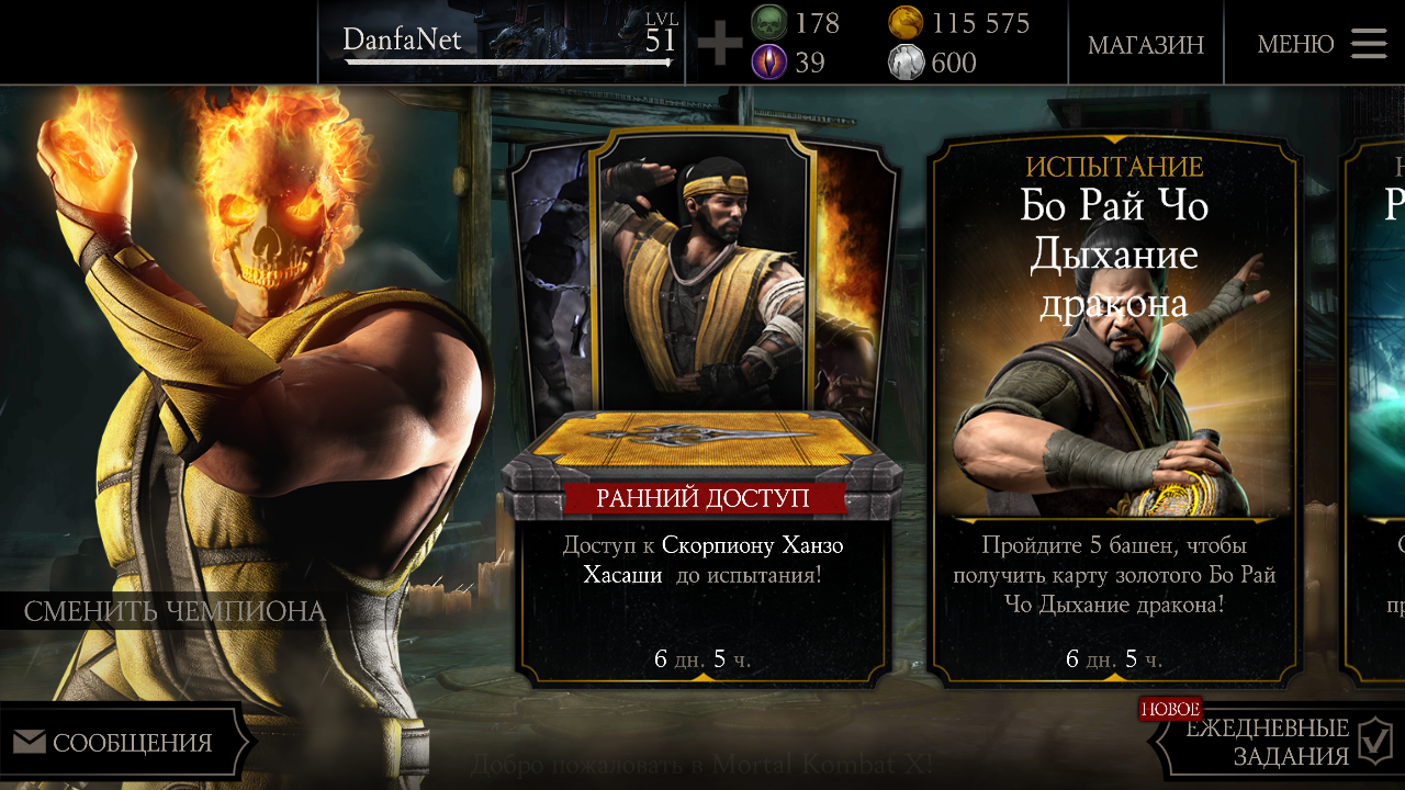 По окончанию испытания Бо Рай Чо Дыханию Дракона, начнется испытание Скорпион Хонзо Хасаши. Уверен этого персонажа ждет большая часть игроков MK X Mobile.