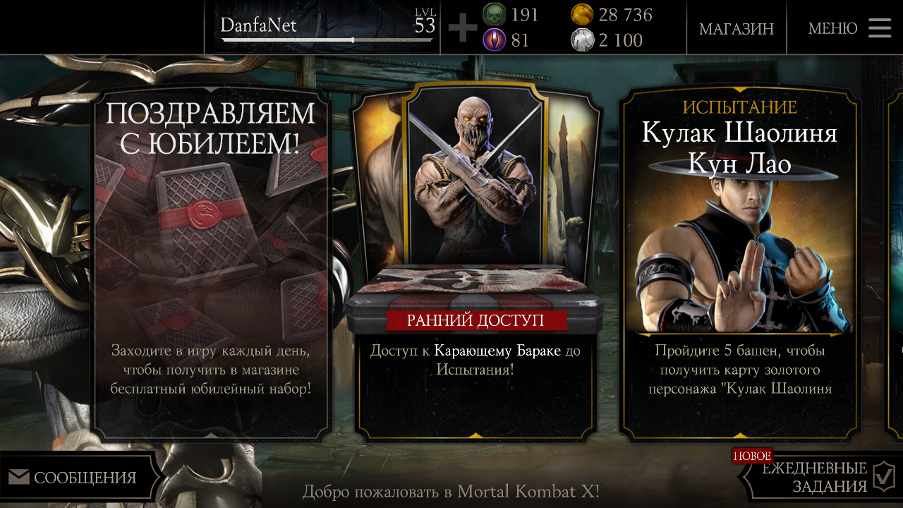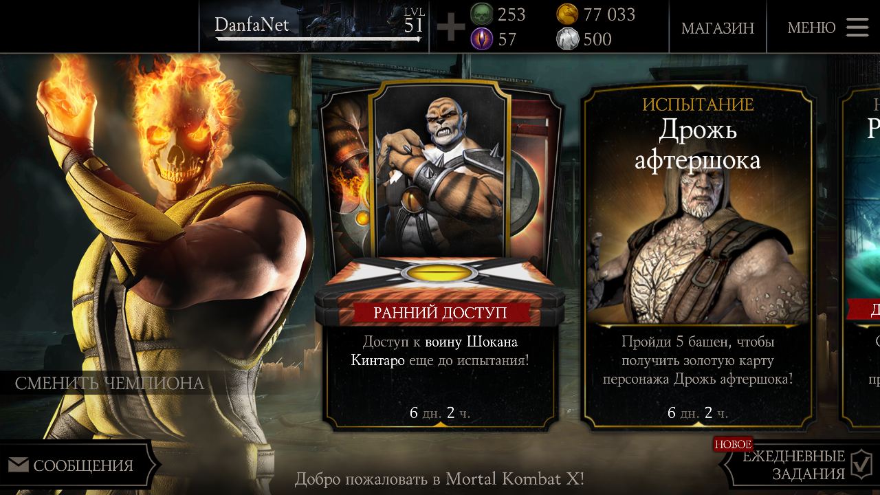Началось испытание Воин Шокана Кинтаро! Все подобности в сообщении: Испытания Mortal Kombat X Mobile (Сообщение отдельно: #2062).