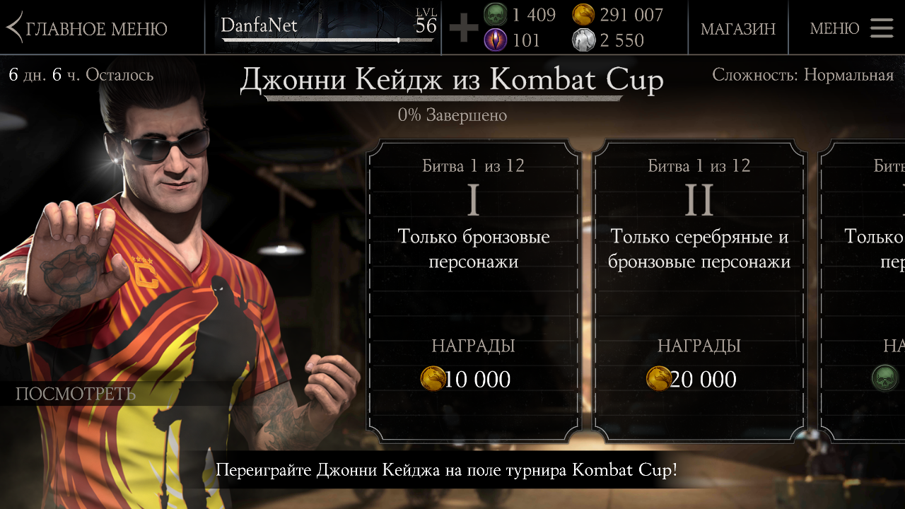 Началось испытание Джонни Кейдж из Kombat Cup! Длительность испытания - чуть больше шести суток. Для прохождения испытания требуется: