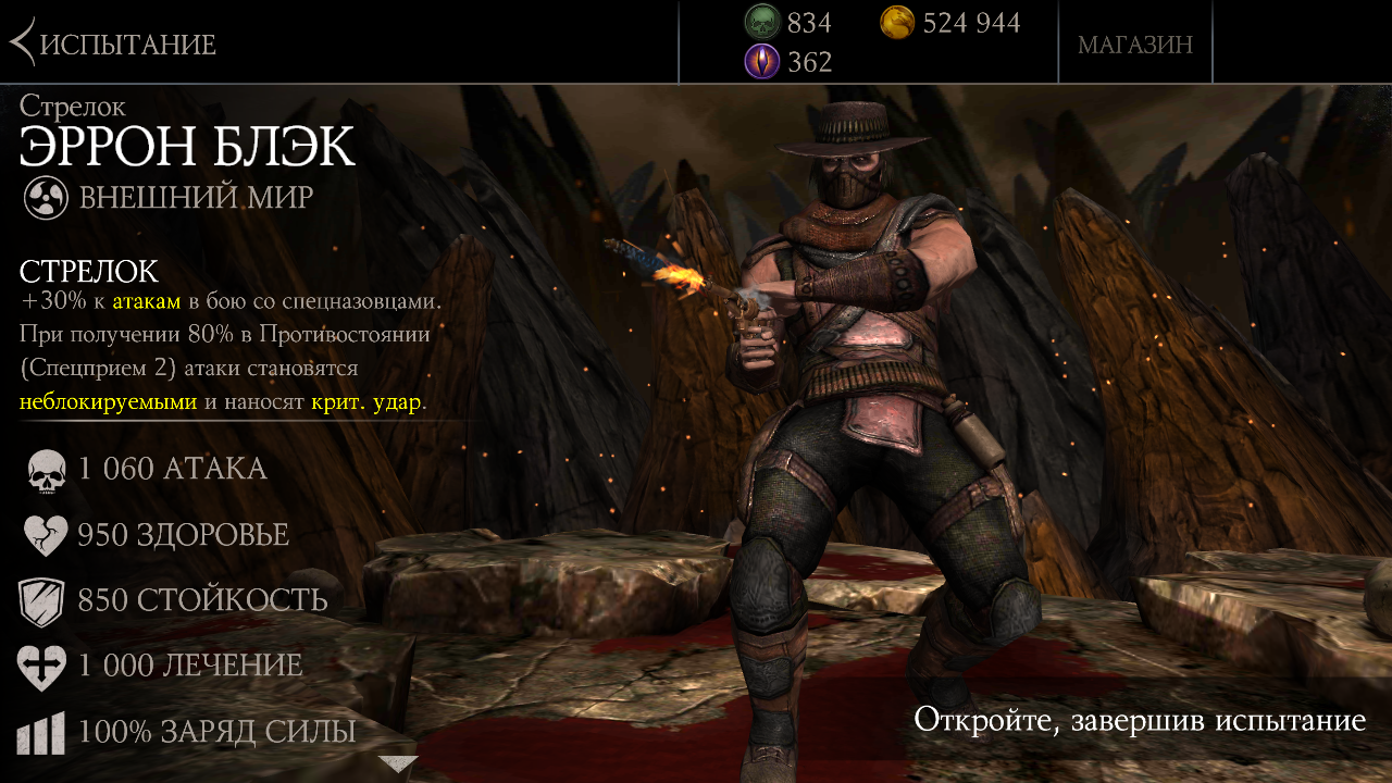 Стрелок Эррон Блэк принадлежит классу Внешний мир. Плюс 30 процентов к атакам в бою со спецназовцами. При получении 80 процентов в Противостоянии (Спецприем 2) атаки становятся неблокируемыми и наносят крит. удар.