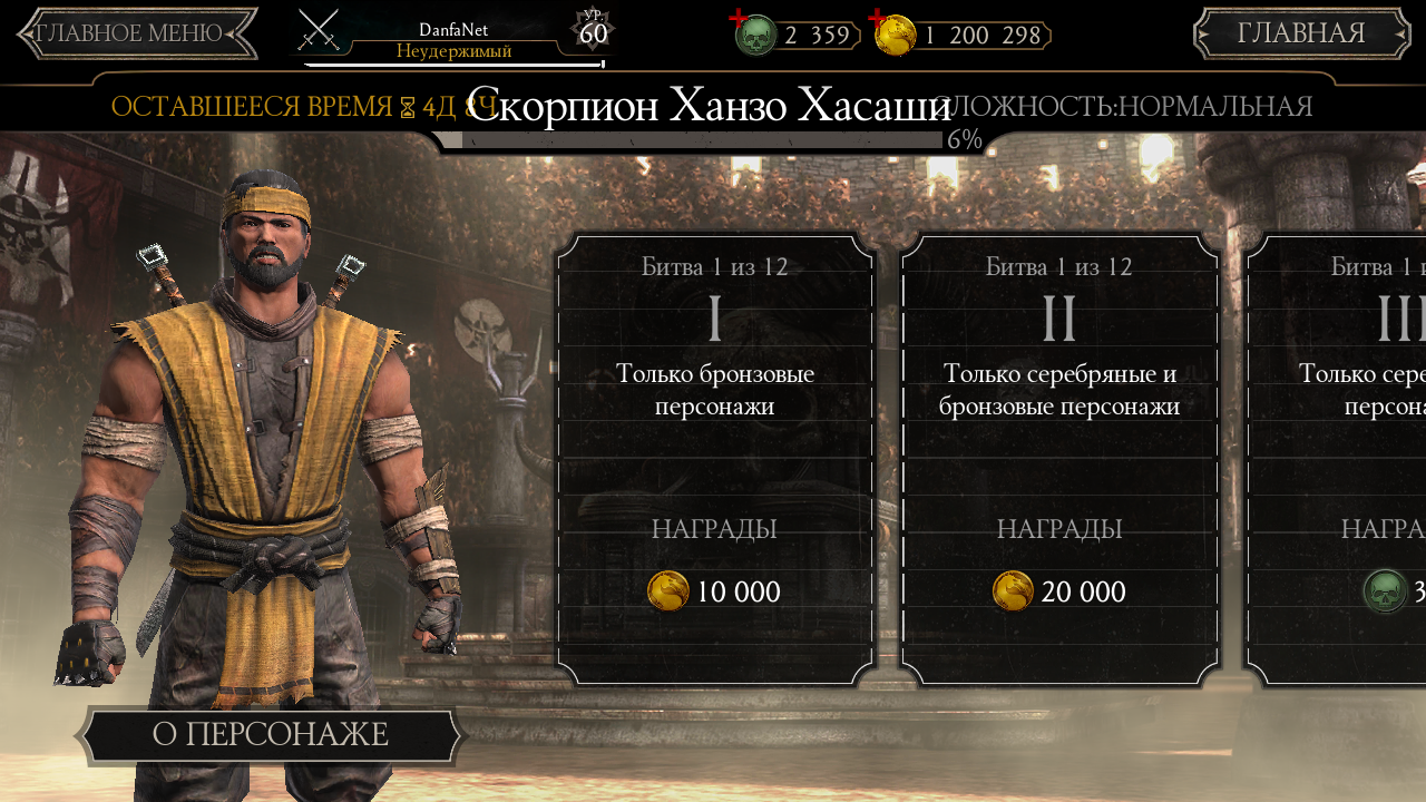 Скорпион "Ханзо Хасаши" (Мастер Единоборств): Алые удары - Основные атаки с вероятностью 10%, а завершающие удары с вероятностью 50% вызывают кровотечение. Может быть наложено несколько эффектов кровотечения Ханзо Хасаши. На спецприемы мастеров единоборств против соперников с кровотечением может тратиться на 50% меньше силы.