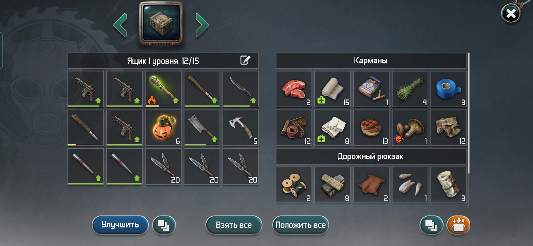 Чтобы быстро находить нужный предмет, я стал складывать гвозди к гвоздям, металолом в ящик с металоломом, одежду к одежде, оружие к оружию и так далее. Так я нахожу нужный предмет гораздо быстрее.