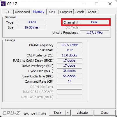 Проверить, работает ли двухканальный режим оперативной памяти, можно при помощи программы CPU-Z. Для этого, после запуска программы, переходим на вкладку "Memory" (Память) и смотрим, что отображает пункт "Channel" (Канал). Если там "Dual" (Двойной), то двухканальный режим работает.
