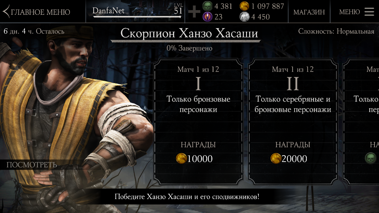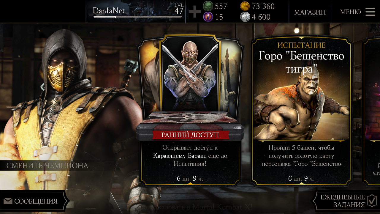 По окончанию испытания Скорпион Ханзо Хасаши, начнется испытание Горо Бешенство игра (Испытания Mortal Kombat X Mobile (Сообщение отдельно: #1962)).