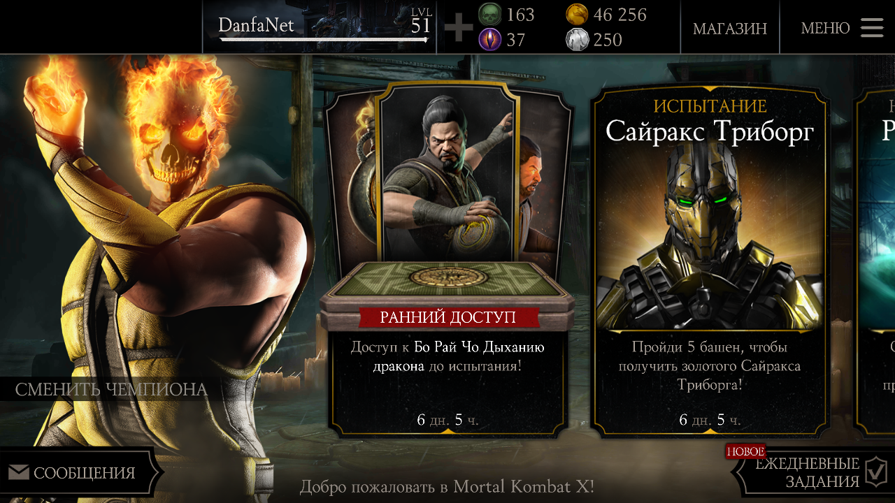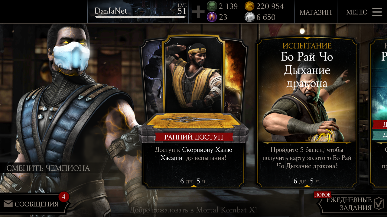 По окончанию испытания Бо Рай Чо Дыханию Дракона, начнется испытание Скорпион Хонзо Хасаши. Уверен этого персонажа ждет большая часть игроков MK X Mobile.