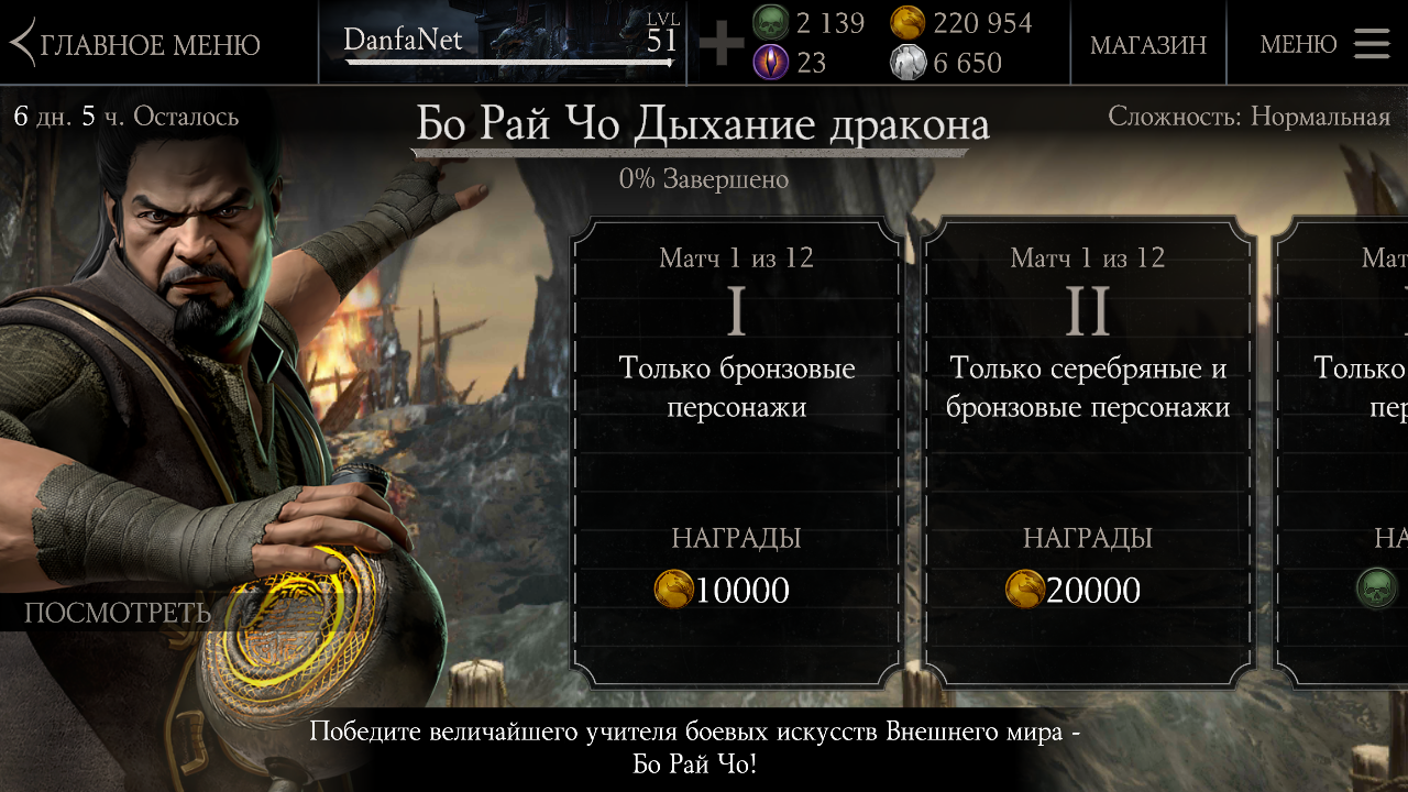 Началось испытание Горо: Бешенство тигра! Длительность испытания - чуть больше шести суток. Для прохождения испытания требуется: