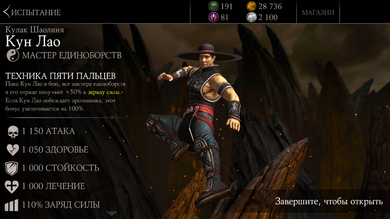 Данное испытание уже было: Испытания Mortal Kombat X Mobile (Сообщение отдельно: #1962), но я его не смог пройти по причине отсутствия Рейдена в моей коллекции персонажей. В этот раз у меня аж три Рейдена и я прошел испытание! За прохождение испытания, игрока награждают золотой карточкой Горо: Бешенство тигра с параметрами - 1200 удар и 1200 жизнь. Карточка теперь доступна в магазине персонажей по цене - 480 душ. За прохождение испытания в сложном режиме игрок получит слияние Горо и Клыки дракона.