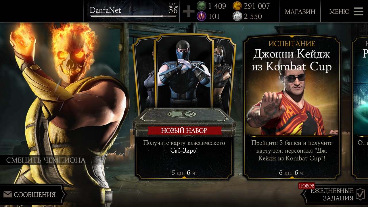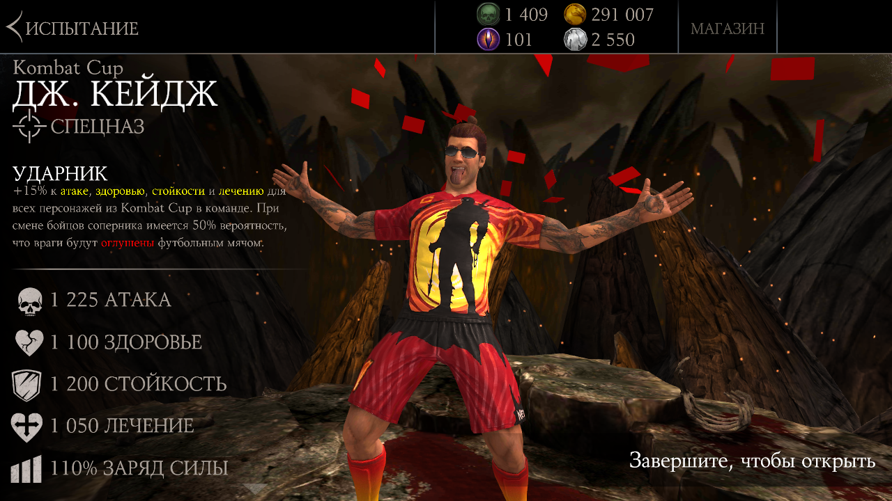 После первого прохождения испытания, игрок награждается золотой карточкой Джонни Кейдж из Kombat Cup, и этот перс доступен теперь в магазине за 477 душ.