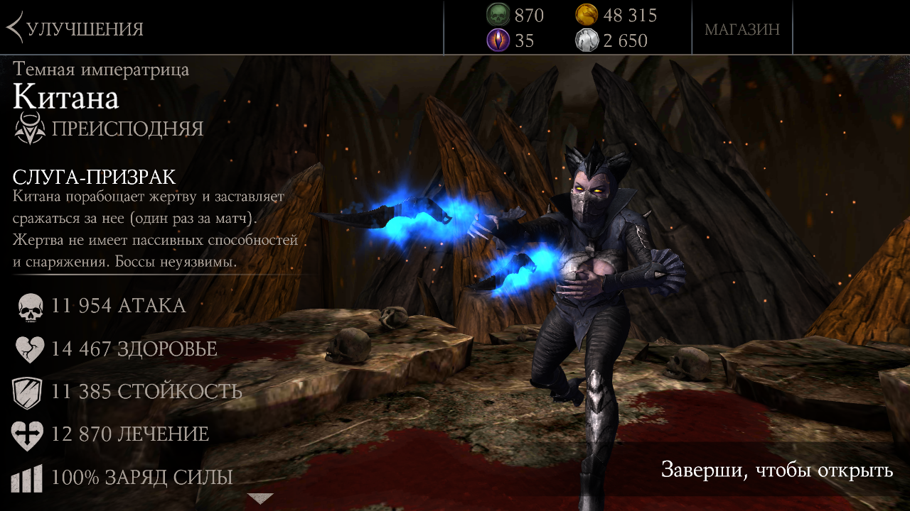 На данный момент у меня карточка Китана: Темная императрица имеет два слияния. Появилась она в моей коллекции благодаря Элитному набору со скидкой 25%: Mortal Kombat X Mobile: Открытие набора (Сообщение отдельно: #1996), два слияния получил при закупке одиннадцати Элитных наборов (без скидки - 360 душ за набор): Mortal Kombat X Mobile: Открытие набора (Сообщение отдельно: #2037).