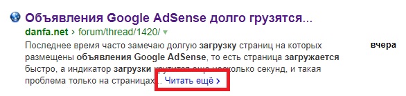 Поисковая выдача Яндекса: "Читать ещё"