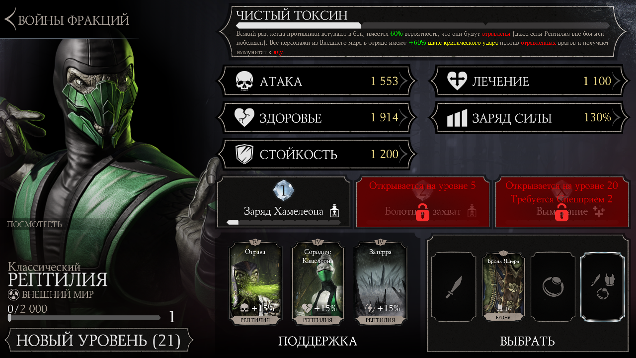 Что будет если проиграешь Рептилии? Будет просто проигрыш и у отряда игрока закончится энергия. Пополнив энергию или сменив отряд, можно вступать в бой снова.