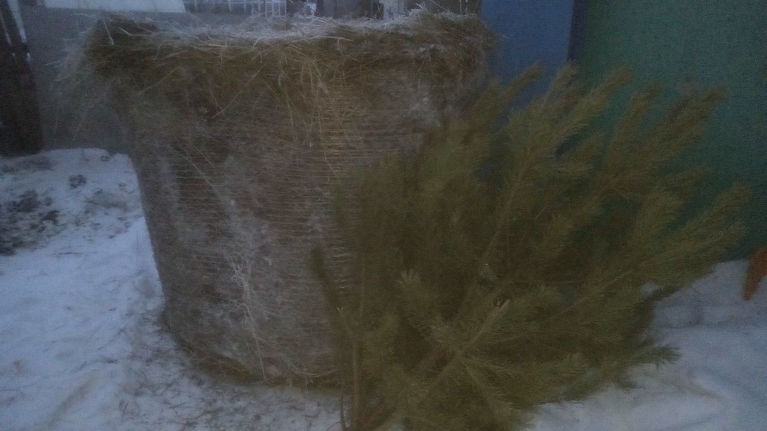 В понедельник заказал тюк сена, в пятницу его доставили прямо ко мне во двор. Тюк тянет килограмм на двести. Тюк обошелся мне в 1600 рублей, летом такой тю в три раза дешевле. Изначально хотел раздербанить тюк и перетаскать сено в сарай, но решил оставить тюк под открытым небом, рядом с сараем. Теперь сена моим кроликам хватит на долго!