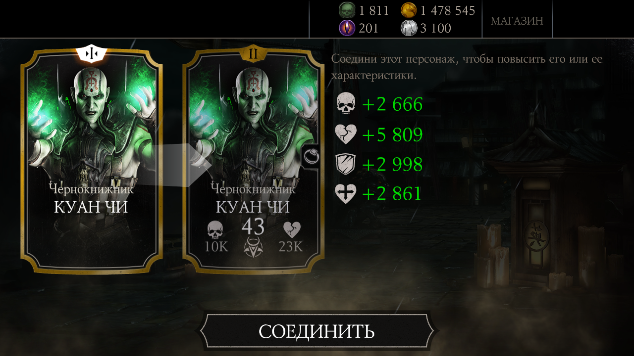 Мне неоднократно, с этого набора выпадал Чернокнижник Куан Чи.