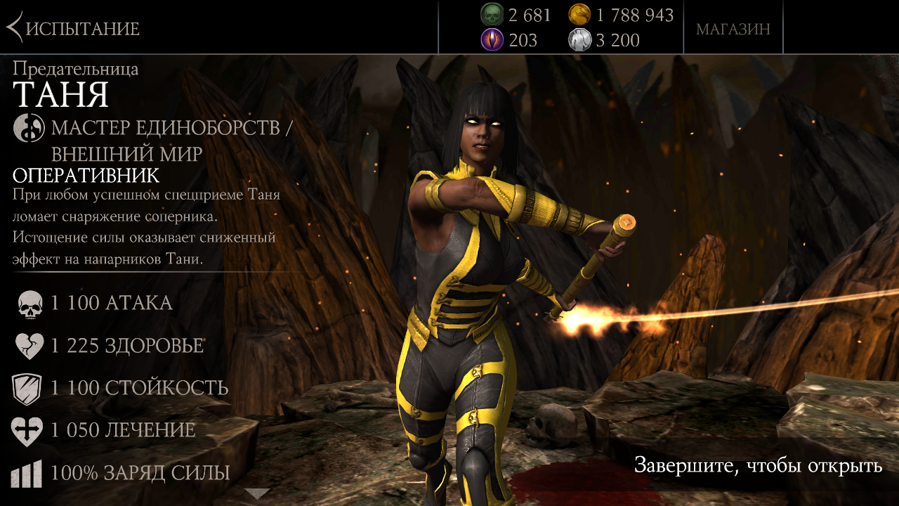 Предательница Таня относится сразу к двум классам: Мастер единоборств и Внешний мир. Оперативник: При любом спецприеме Таня ломает снаряжение соперника. Истощение силы оказывает сниженный эффект на напарников Тани.Требования башен: