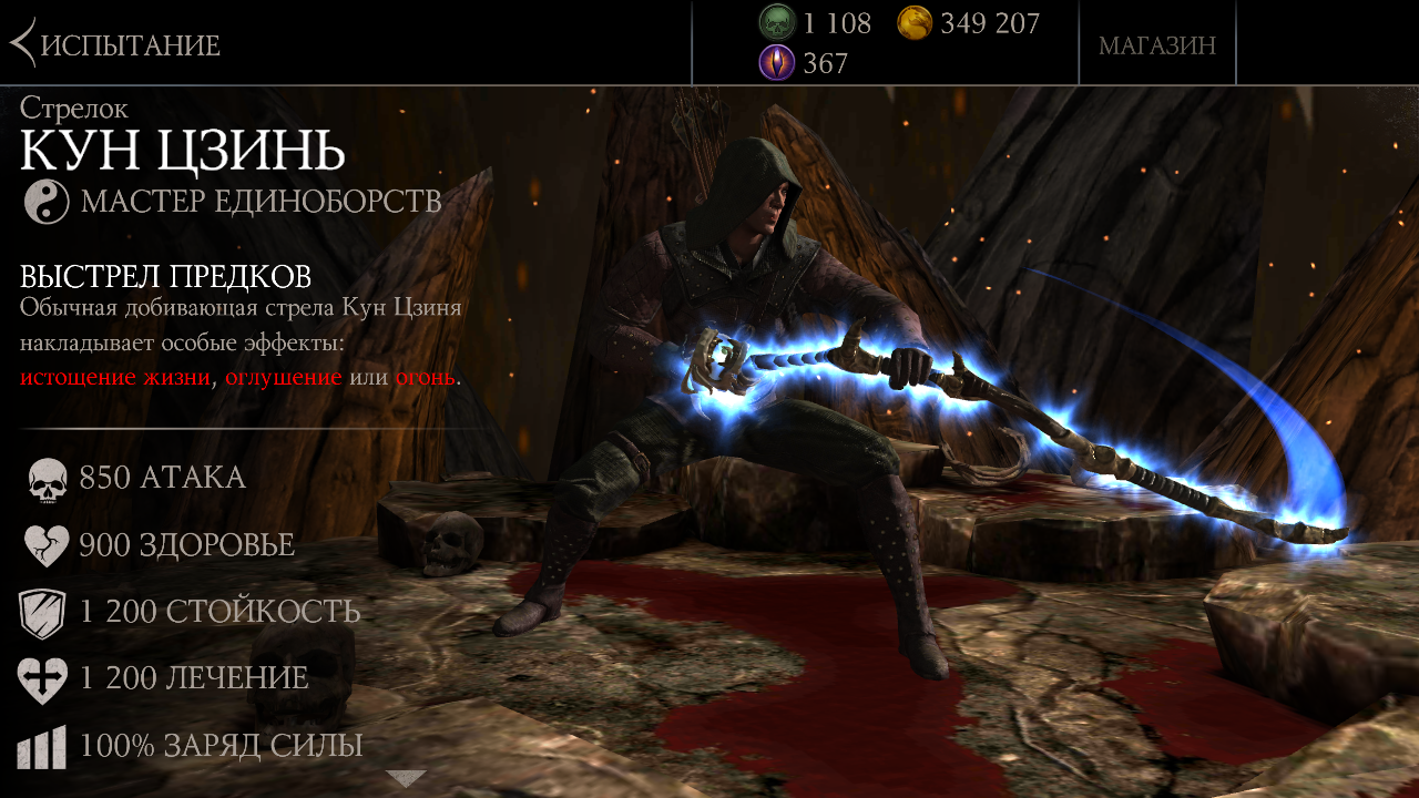 Выстрел предков: Обычная добивающая стрела Кун Цзиня накладывает особые эффекты: истощение жизни, оглушение или огонь.