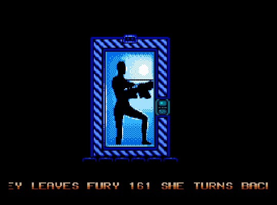 На экранах мелькает космический монстр наводящий ужас, из фильма Чужие.