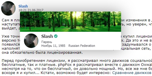 Сегодня, загрузил скриншот более 2000 пикселей в ширину. Сценарий сделал копию данной картинки шириной 500 пикселей, для вывода в ленте новостей. Картинка, мне показалось, что в ленте, нечеткая, так как сжата в ~ четыре раза. Она выглядит нечетко, даже в открывшемся слое... Я решил дать возможность пользователям, просматривать оригинальный размер, прямо в ленте новостей, и для этого добавил ссылку на оригинальный размер картинки, на стене, под картинкой: